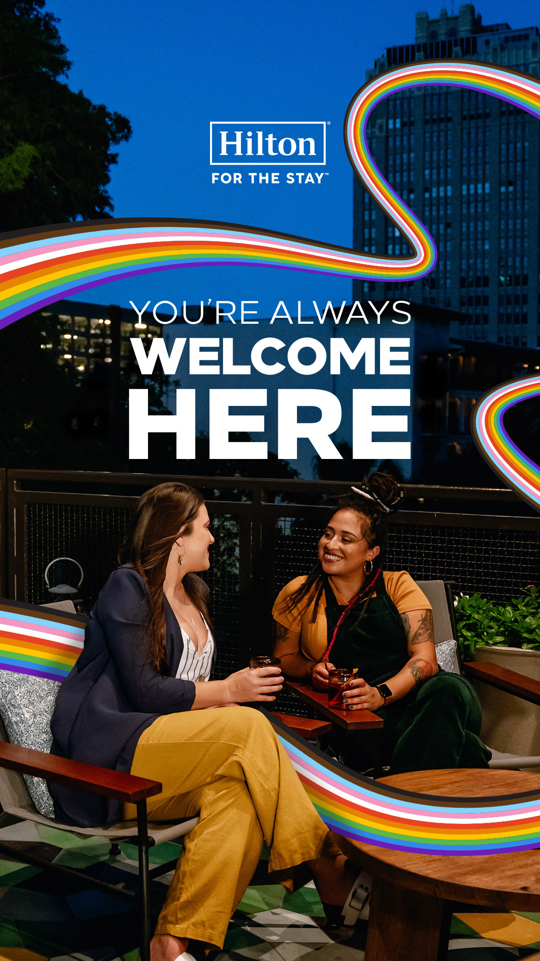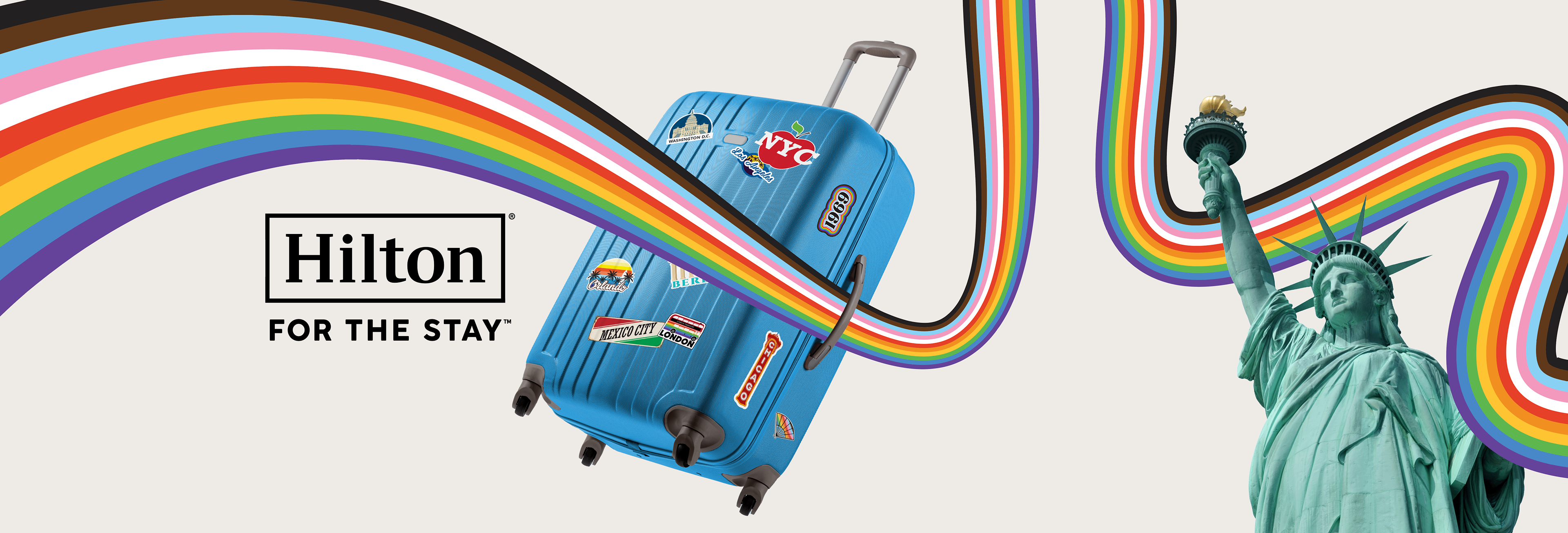 Every year, Hilton runs a Pride campaign to celebrate the LGBTQIA+ community and express that our hotels are a safe and welcoming space for all guests. In 2023, my team was tasked with creating a set of templated assets for properties to use for their individual socials, websites, etc.