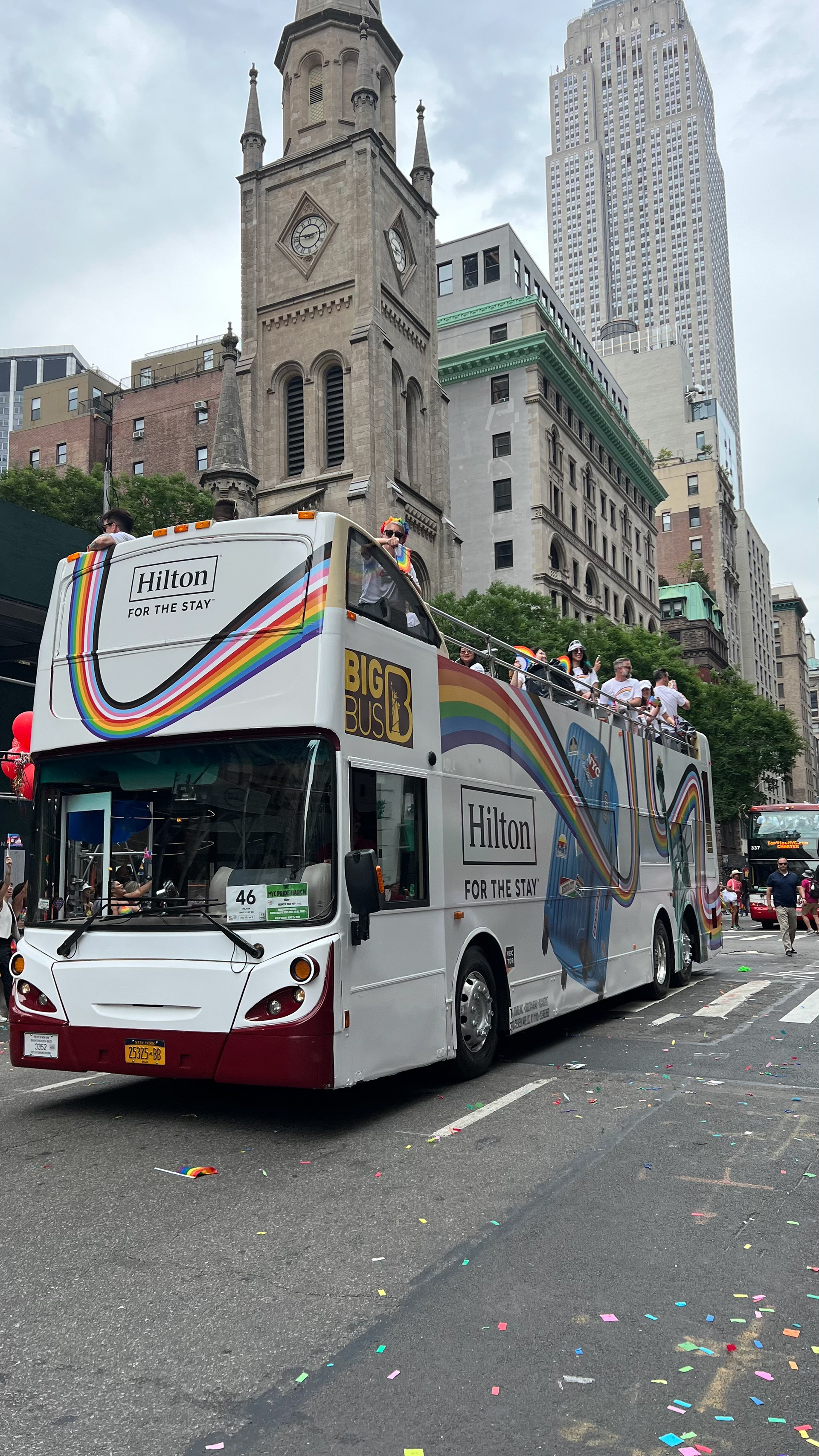 As a member of the LGBTQIA+ community myself, I was honored and overjoyed to march in the NYC parade alongside the bus wrap I designed!
