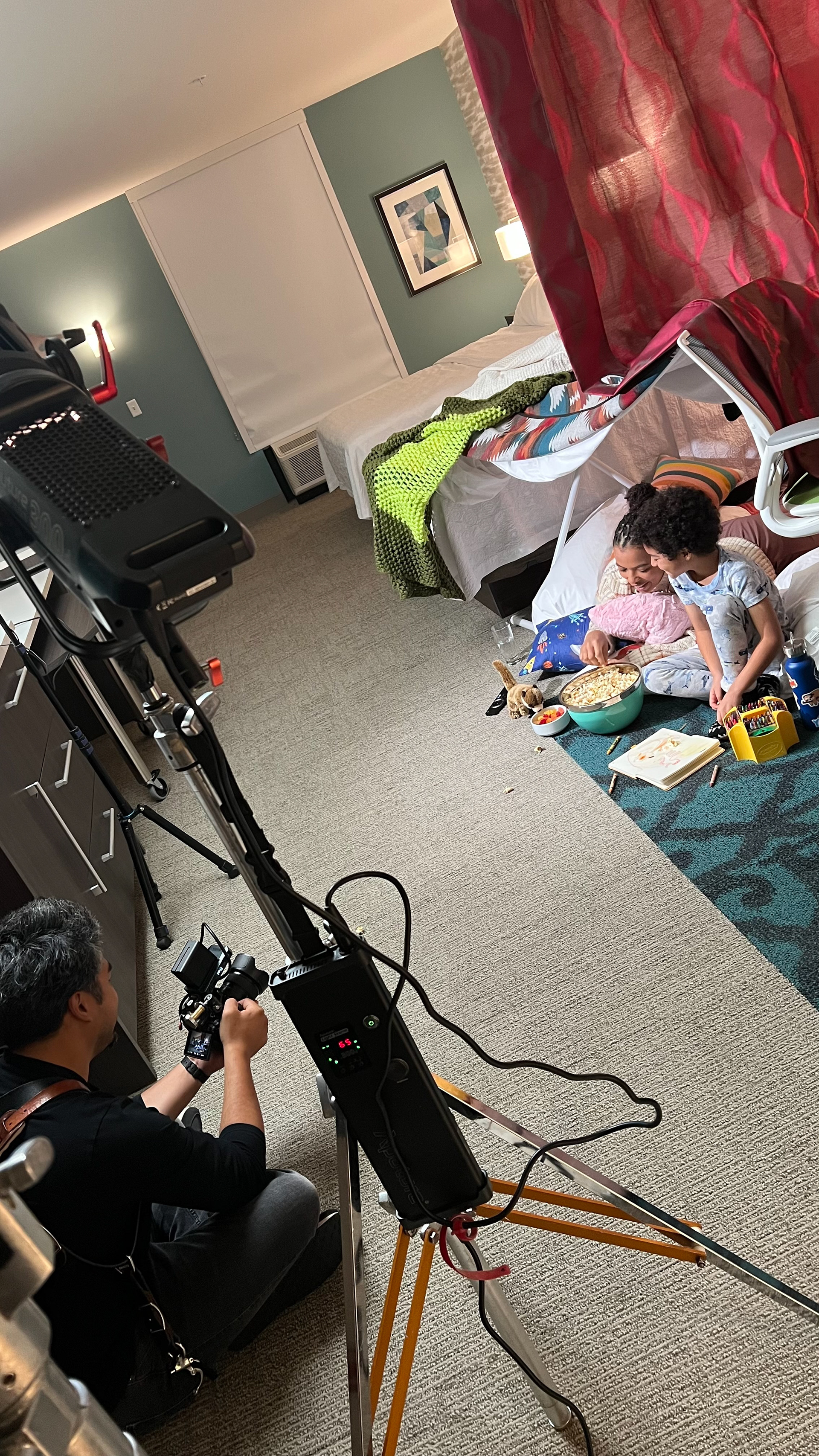 Some BTS moments from set. And after wrap, we needed to deliver some custom bedazzled DJ headphones to Paris Hilton (which I designed!), so we got to attend her wedding anniversary party on Santa Monica pier! Where we played carnival games, won Paris-shaped pillows, rode the roller coaster and ferris wheel, and rubbed elbows with a few celebs.